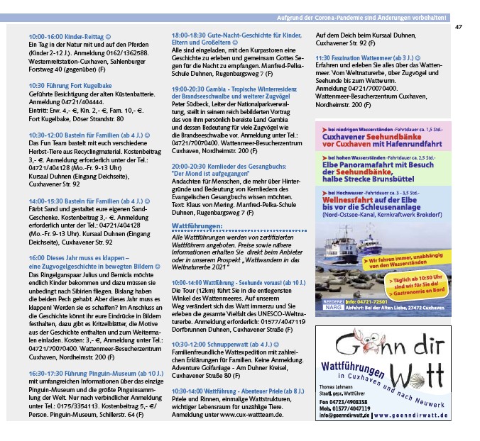 (Mo.-Fr. 9-13 Uhr). Kursaal Duhnen (Eingang