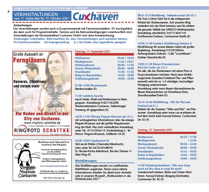 Veranstaltungen der Nordseeheilbad Cuxhaven GmbH sind ohne Kennzeichnung.