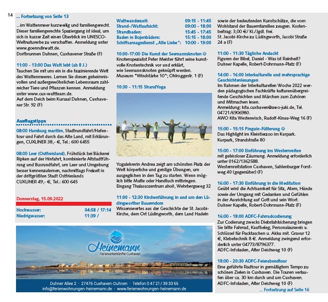 schönen Zielen in Cuxhaven. Die Touren verlaufen