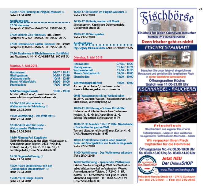 und Plazabesuch, 44,- ¤, CUXLINER Tel.: 600 645 (A)