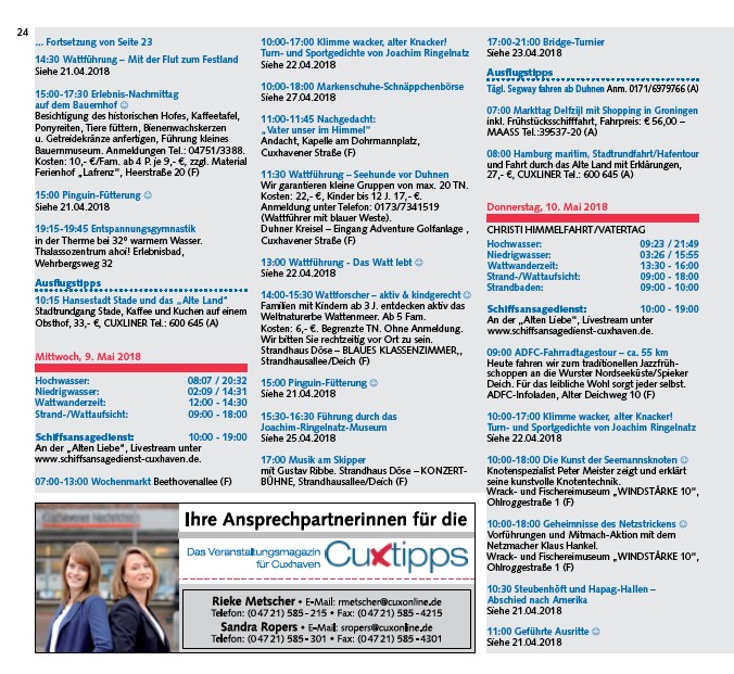 Kosten: 22,- ¤, Kinder bis 12 J. 17,- ¤.