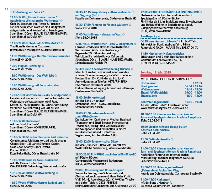 Wattenmeer. Ab 5 Fam. Kosten: 6,- ¤.