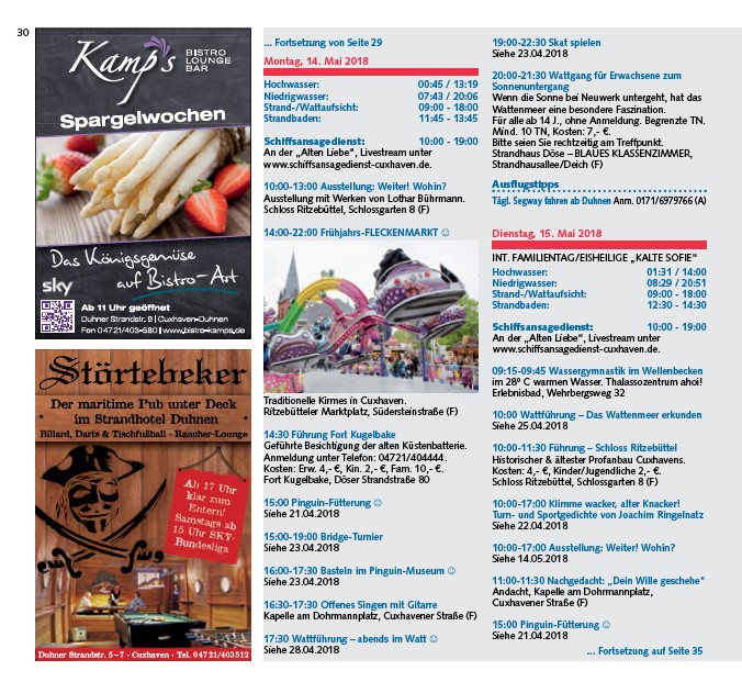 Kosten: Erw. 4,- ¤, Kin. 2,- ¤, Fam. 10,- ¤.
