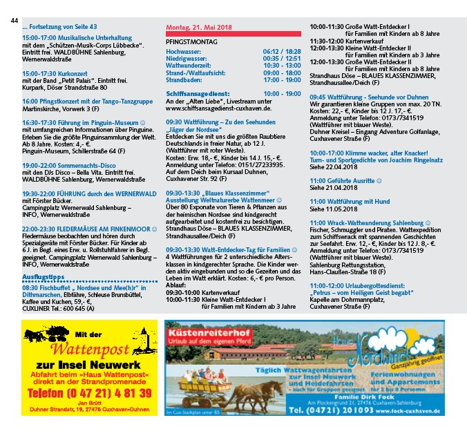 Kosten: 22,- ¤, Kinder bis 12 J. 17,- ¤.