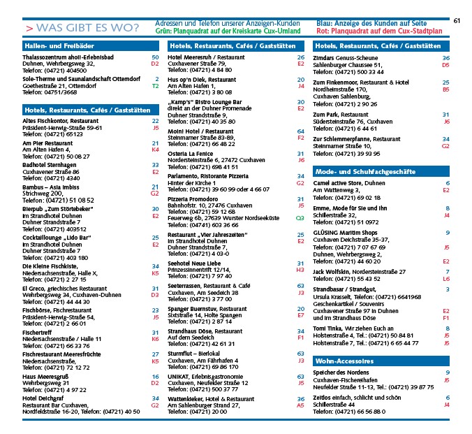 Adressen und Telefon unserer Anzeigen-Kunden
