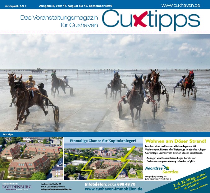 1 Schutzgebühr 0,50 € Ausgabe 8, vom 17. August bis 13. September 2019 www.cuxhaven.de Das Veranstaltungsmagazin für Cuxhaven Anzeige