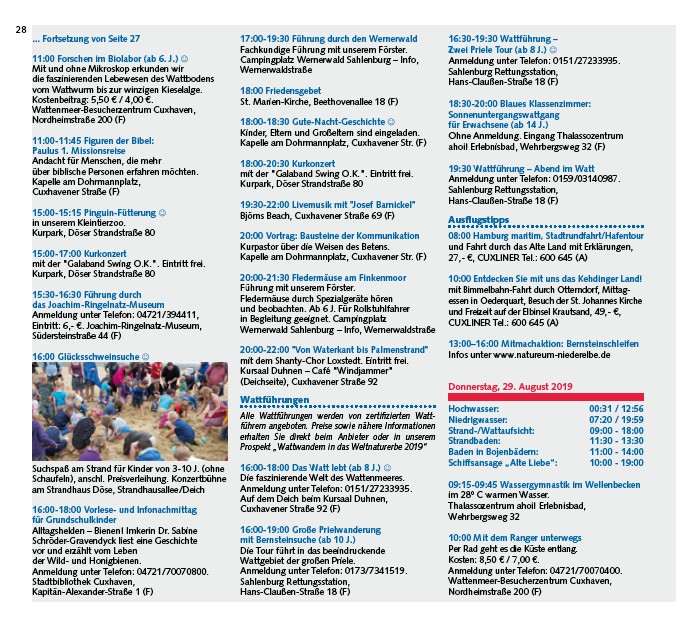 Prospekt „Wattwandern in das Weltnaturerbe 2019“