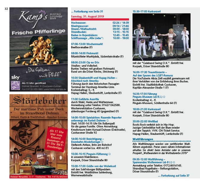 Strand-/Wattaufsicht: 09:00 - 18:00