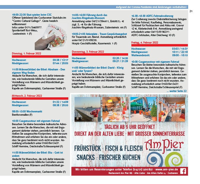 Aufgrund der Corona-Pandemie sind Änderungen vorbehalten!