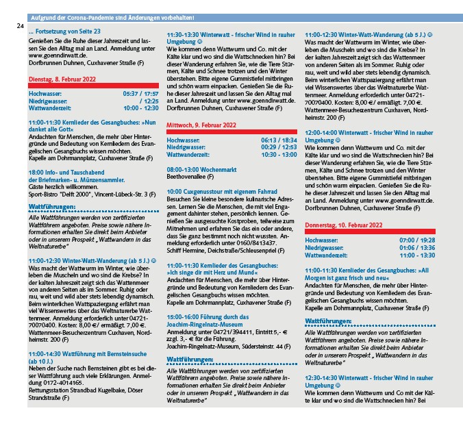 ... Fortsetzung von Seite 23 11:30-13:30 Winterwatt - frischer Wind in rauher
