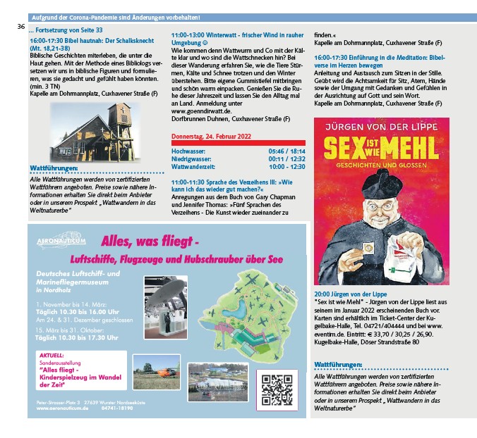 Aufgrund der Corona-Pandemie sind Änderungen vorbehalten!