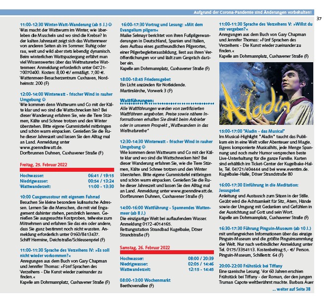 Aufgrund der Corona-Pandemie sind Änderungen vorbehalten!