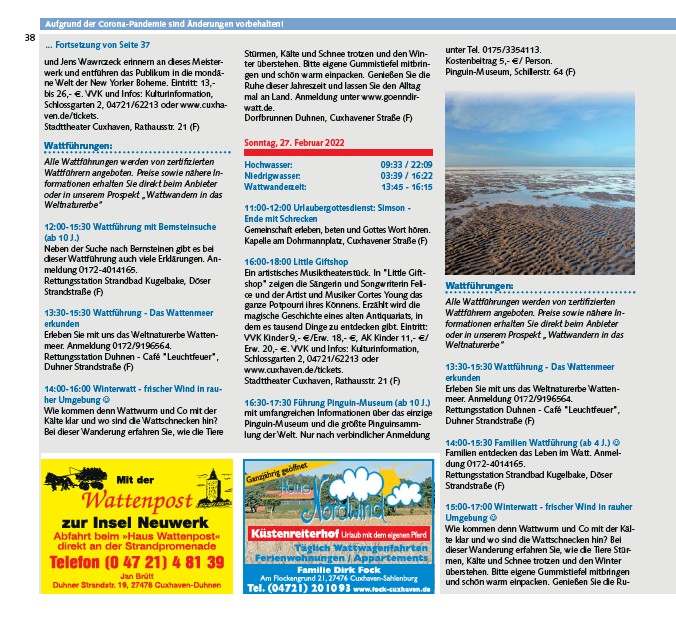 Aufgrund der Corona-Pandemie sind Änderungen vorbehalten!