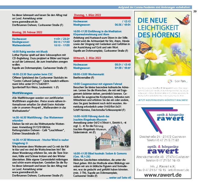 Aufgrund der Corona-Pandemie sind Änderungen vorbehalten!
