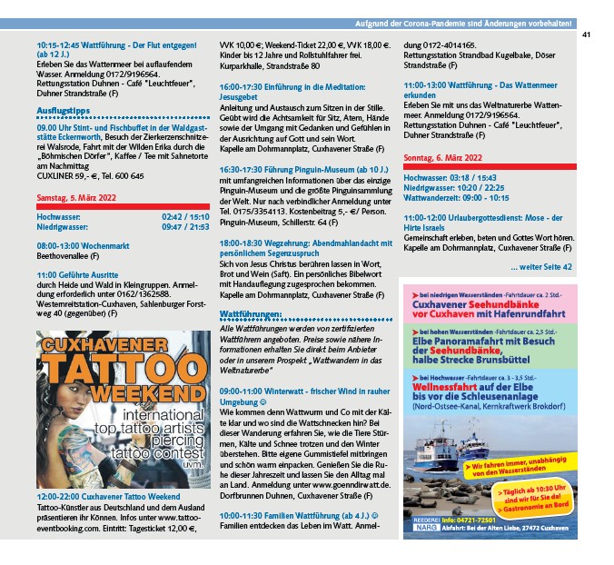Aufgrund der Corona-Pandemie sind Änderungen vorbehalten!