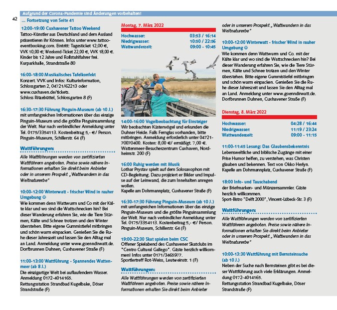 Aufgrund der Corona-Pandemie sind Änderungen vorbehalten!