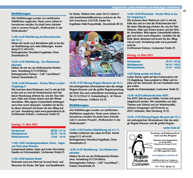 oder bambinimarkt@tourismus.cuxhaven.de. Eintritt: