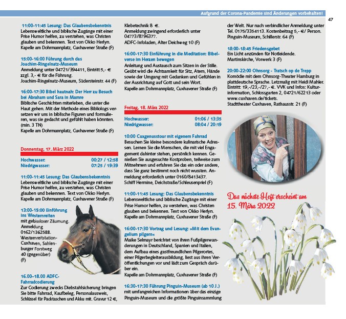 Anmeldung unter 04721/394411, Eintritt 5,- !