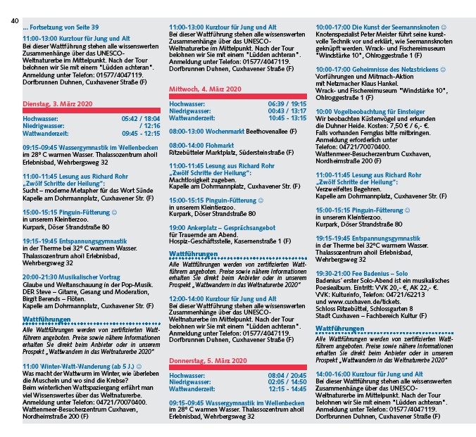 Prospekt „Wattwandern in das Weltnaturerbe 2020“