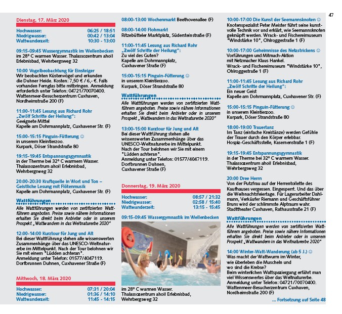 Prospekt „Wattwandern in das Weltnaturerbe 2020“