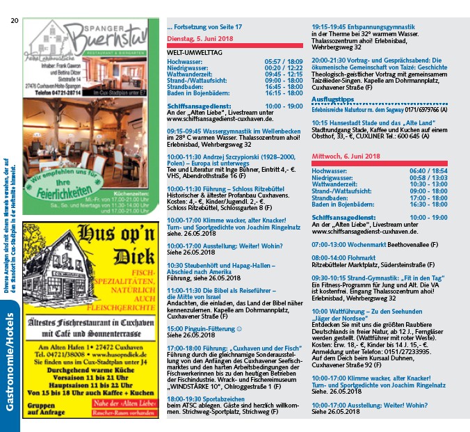 den Standort im Cux-Stadtplan in der Heftmitte hinweist.