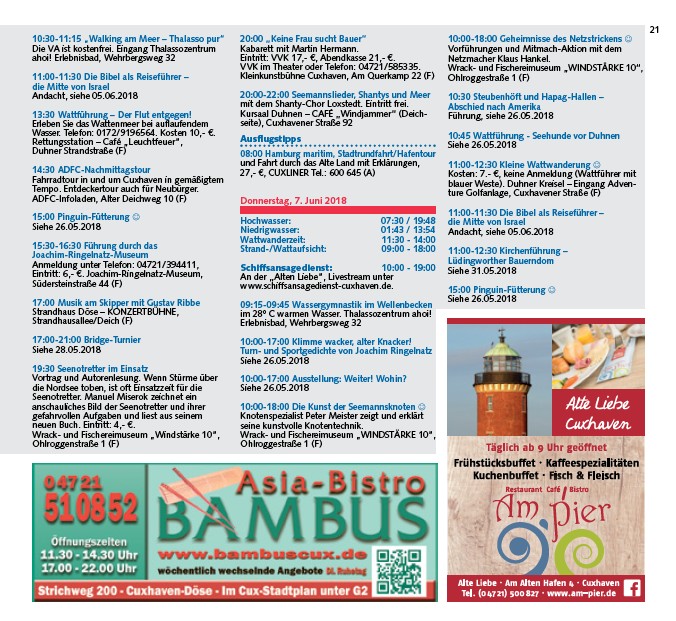 Anmeldung unter Telefon: 04721/394411,