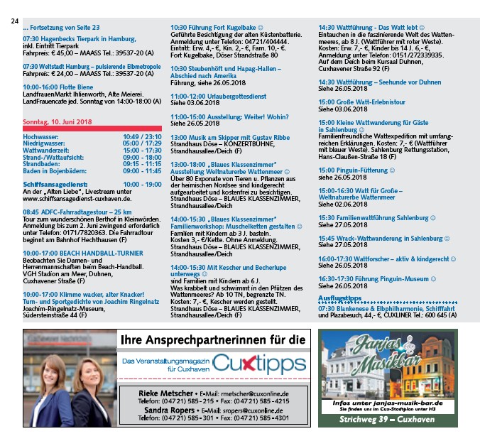 und Plazabesuch, 44,- ¤, CUXLINER Tel.: 600 645 (A)