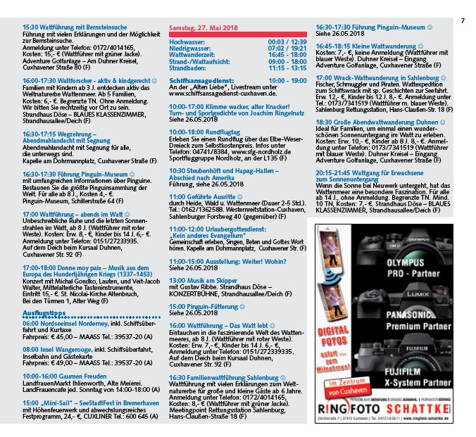 Kosten: 7,- ¤, keine Anmeldung (Wattführer mit