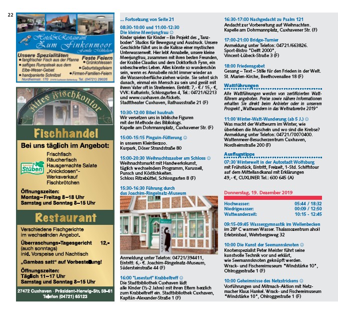 VVK: Kulturinfo, Schlossgarten 4, Tel.: 04721/62213