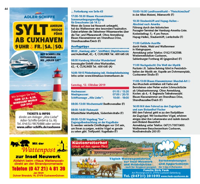 und Aufenthalt, 42,- ¤, CUXLINER Tel.: 600 645 (A)