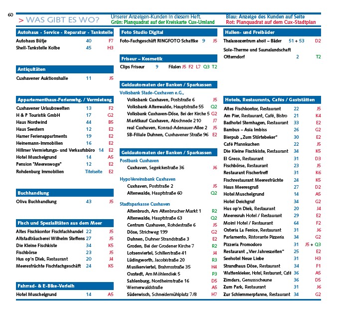 > Was gibt es wo? Blau: Anzeige des Kunden auf Seite