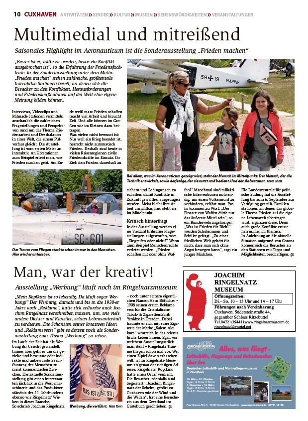 Saisonales Highlight im Aeronauticum ist die Sonderausstellung „Frieden machen“