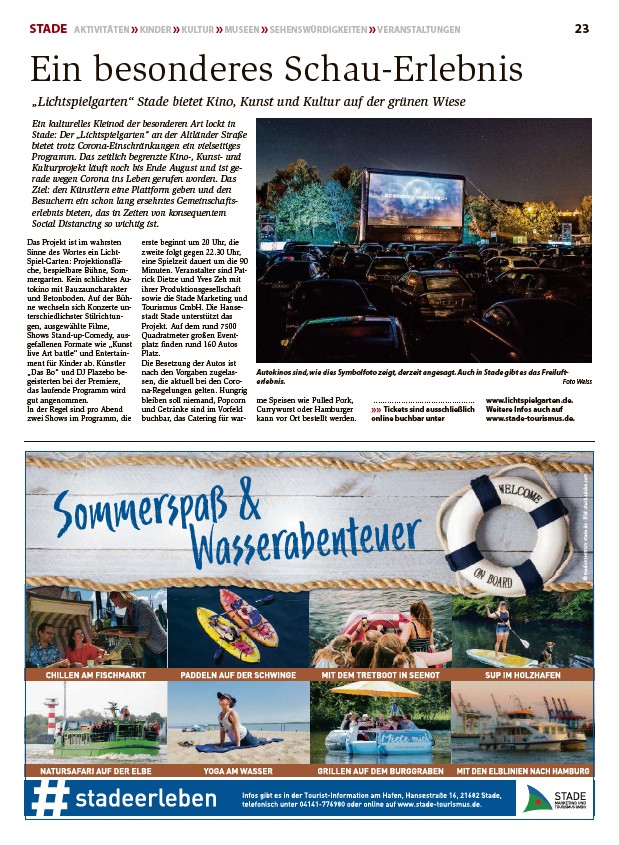 „Lichtspielgarten“ Stade bietet Kino, Kunst und Kultur auf der grünen Wiese