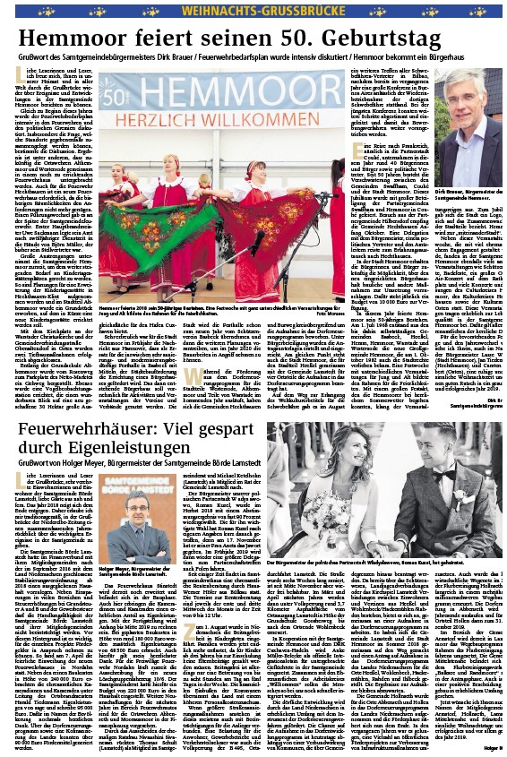 Grußwort des Samtgemeindebürgermeisters Dirk Brauer / Feuerwehrbedarfsplan wurde intensiv diskutiert / Hemmoor bekommt ein Bürgerhaus