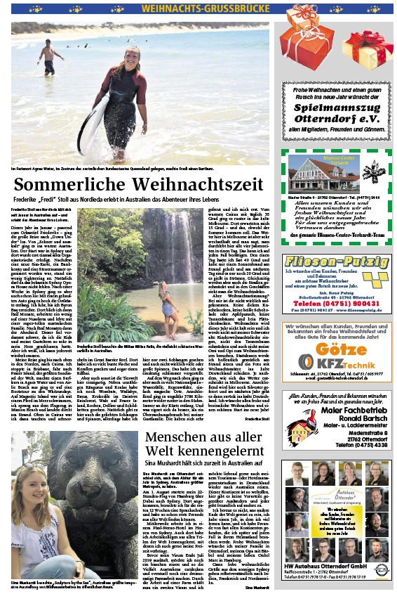 Frederike „Fredi“ Stoll aus Nordleda erlebt in Australien das Abenteuer ihres Lebens
