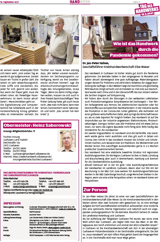 • Das Handwerk in Cuxhaven ist bisher relativ gut durch die Pandemie