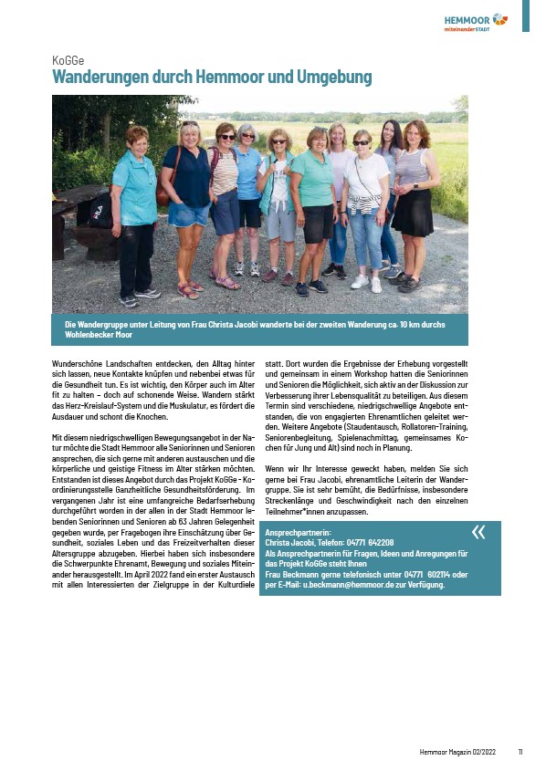 gerne bei Frau Jacobi, ehrenamtliche Leiterin der Wandergruppe.