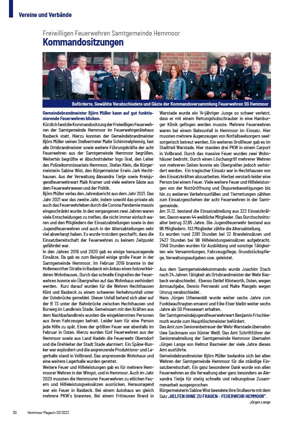 Wehren in der Wingst, und in Hemmoor. Auch im Jahr