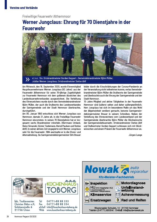 Hemmoor einzutreten. In seinen 70 Dienstjahren hat er insgesamt