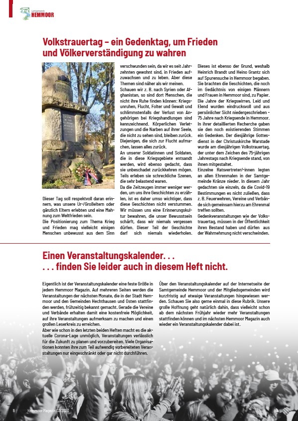 stattfinden können und im nächsten Hemmoor Magazin auch