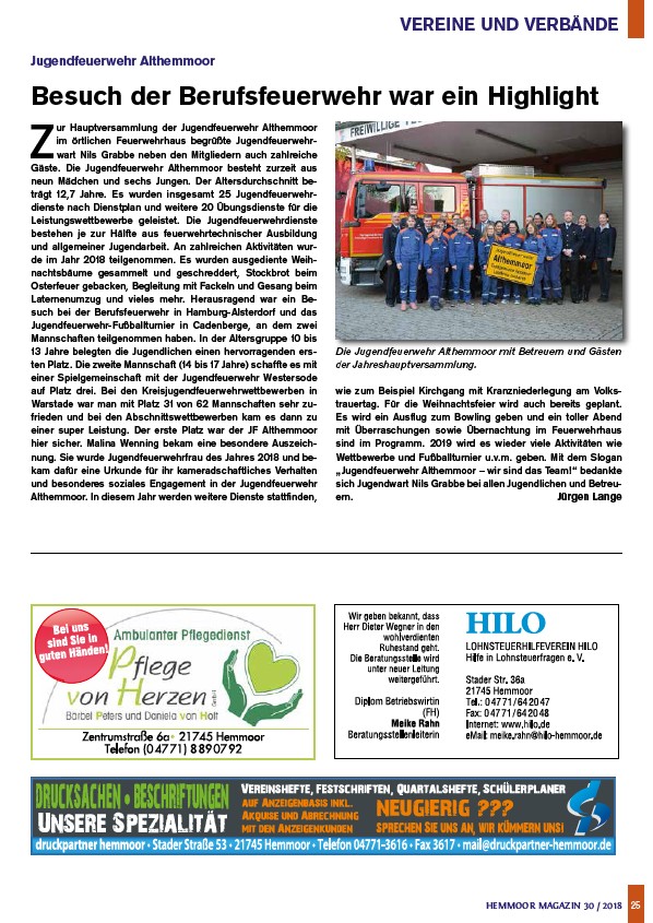 Zur Hauptversammlung der Jugendfeuerwehr Althemmoor