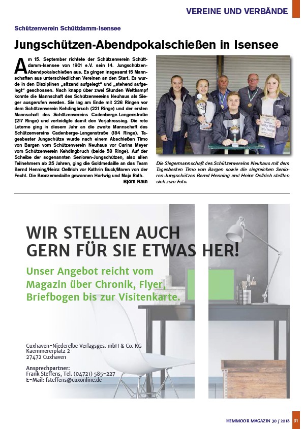 dem Schützenverein Kehdingbruch (221 Ringe) und der ersten