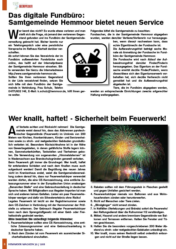 6 HEMMOOR MAGAZIN 30 / 2018