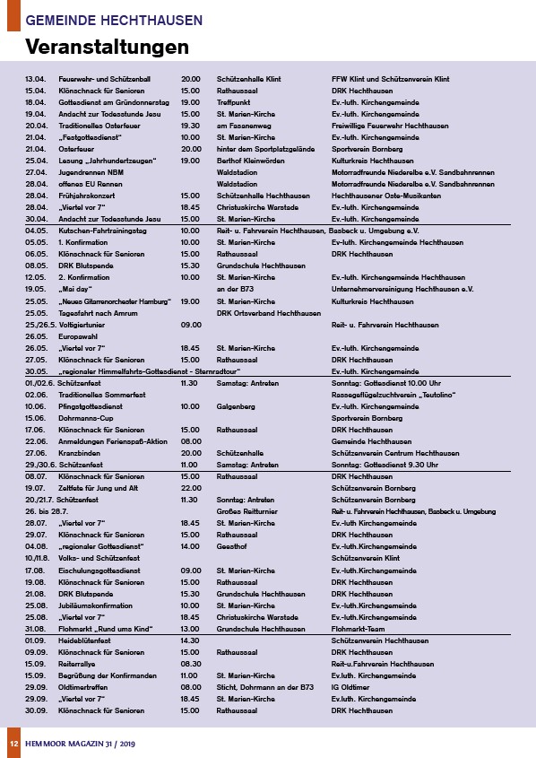 13.04. Feuerwehr- und Schützenball 20.00 Schützenhalle Klint FFW Klint und Schützenverein Klint