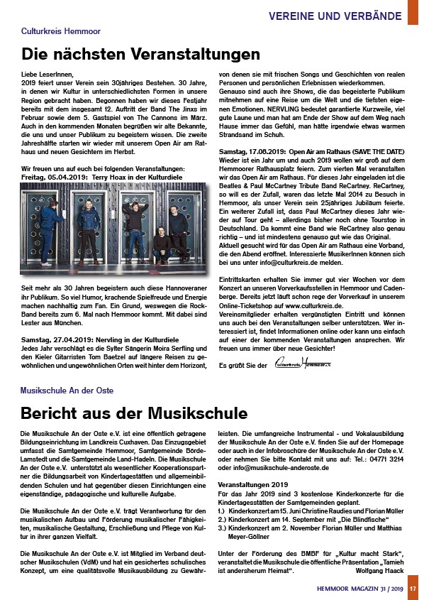 Band bereits zum 6. Mal nach Hemmoor kommt. Mit dabei sind