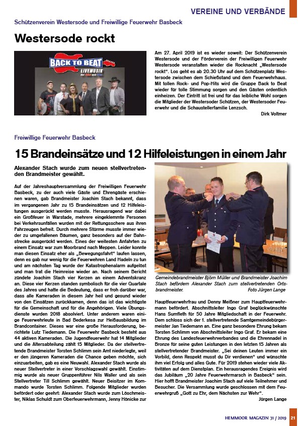das Jubiläum „20 Jahre Feuerwehrmarsch in Basbeck“ sein.