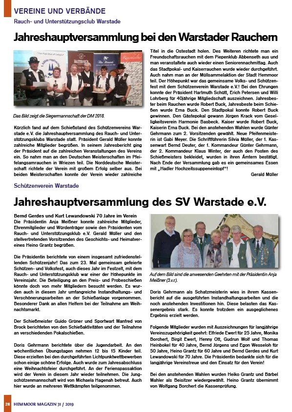Gehrmann zum 2. Vorsitzenden gewählt. Neue Pfeifenmeisterin