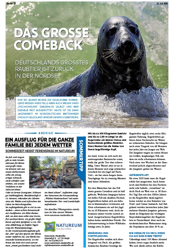 VOR 100 JAHREN WURDE DIE KEGELROBBE VORWIEGEND