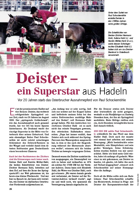 Vor 20 Jahren starb das Osterbrucher Ausnahmepferd von Paul Schockemöhle