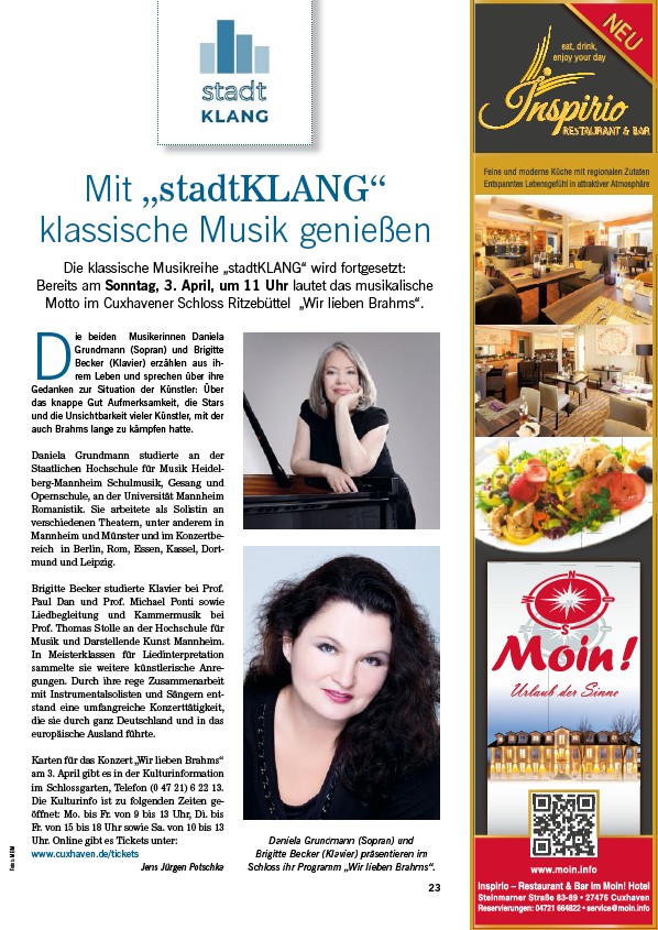Motto im Cuxhavener Schloss Ritzebüttel „Wir lieben Brahms“.